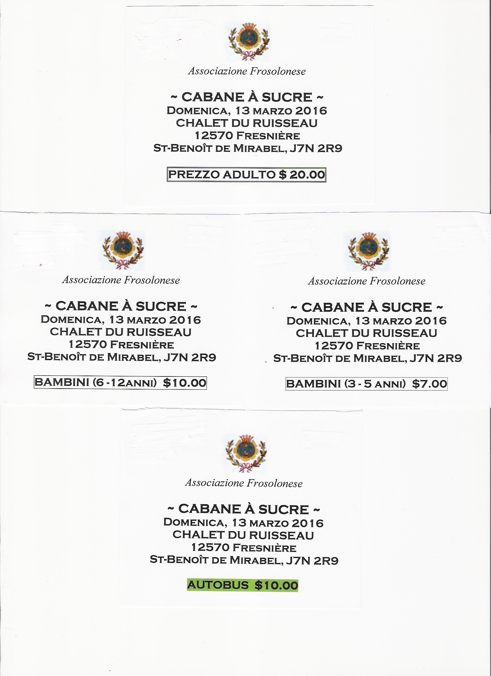 Il prezzo del biglietto é di 20.00$ per personna e sara servito un rinfresco